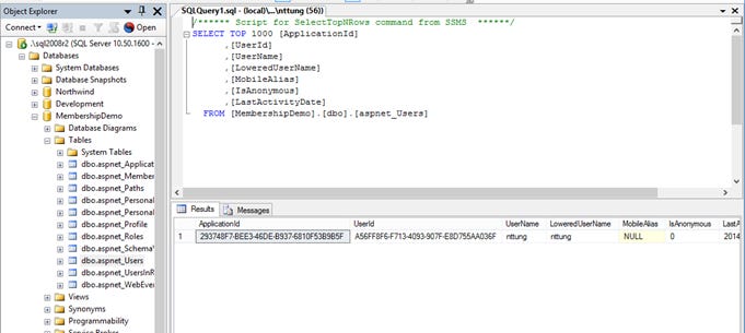 Mọi thứ đã thành công, thông tin người dùng đã được lưu trữ trong database MembershipDemo.