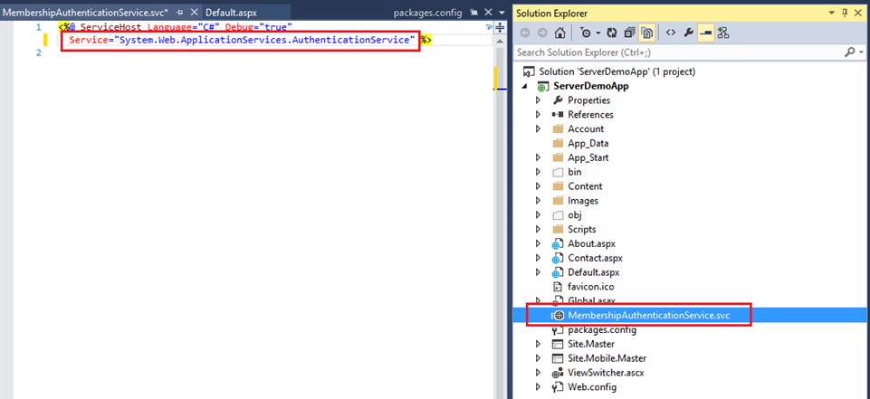 Sửa file MembershipAuthenticationService.svc trỏ đến System.Web.ApplicationServices.AuthenticationService