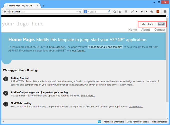 Ctrl+F5 từ Visual Studio để chạy ứng dụng sau đó đăng ký thử một người dùng