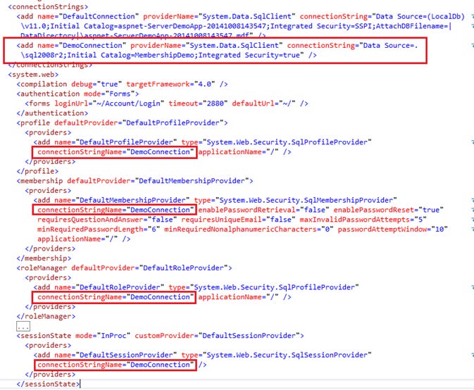Sau khi đã có database với các table, view, stored membership bước cuối cùng là trỏ lại connectionString trong web.config để Profile, Role, Membership, SessionState cùng sử dụng database này.