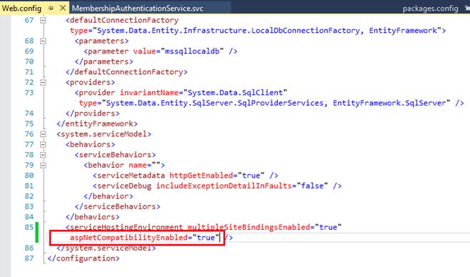 Sửa web.config bổ sung aspNetCompatibilityEnabled = "true" và bật AuthenticationService trong web.extensions.