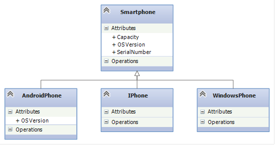 Khi bắt đầu xây dựng ứng dụng chúng ta sẽ bắt đầu việc thiết kế các lớp, thông thường chúng ta sẽ thấy có trường hợp một số lớp dường như có quan hệ với những lớp khác, chúng có những đặc tính khá giống nhau. VD: 3 lớp AndroidPhone, IPhone, WindowsPhone ở hình dưới: