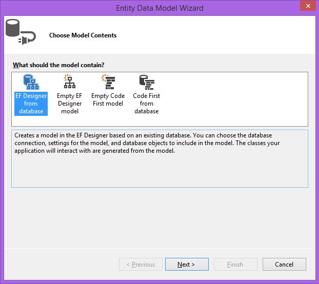 Trong wizard chọn EF Designer from database. Click Next button sau đó chọn New Connection, điền địa chỉ SQL Server trên máy của bạn (ở đây trên máy tôi là .\SQL2008R2) rồi chọn database Northwind. Click OK rồi Next