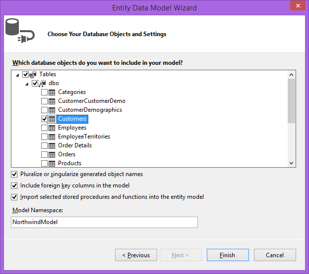 Bước tiếp theo chúng ta chọn bảng Customers để làm việc và click Finish.