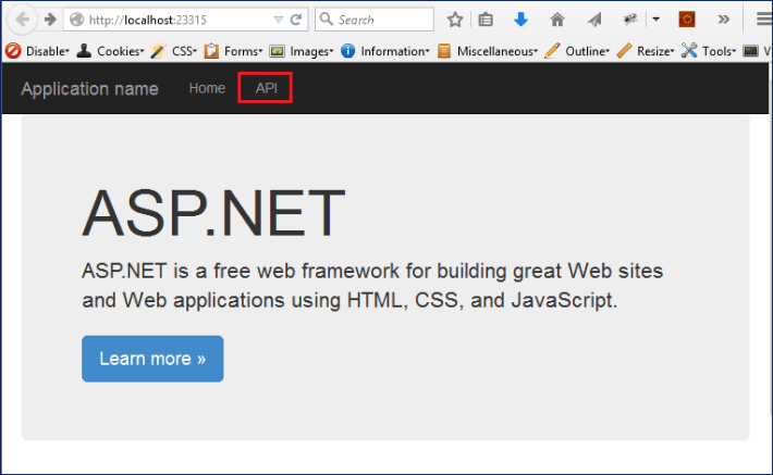 Set project thành Startup project sau đó Ctrl+F5 để chạy chúng ta sẽ thấy default của ứng dụng có 1 link API, đây chính là trang Help Page liệt kê tất cả các Web API có trong ứng dụng.