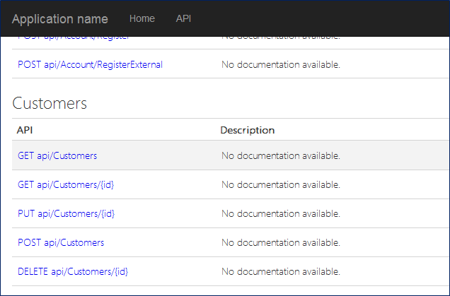 Ngoài 2 API default là Account, Values giờ đây chúng ta có thêm API về Customer như hình dưới.