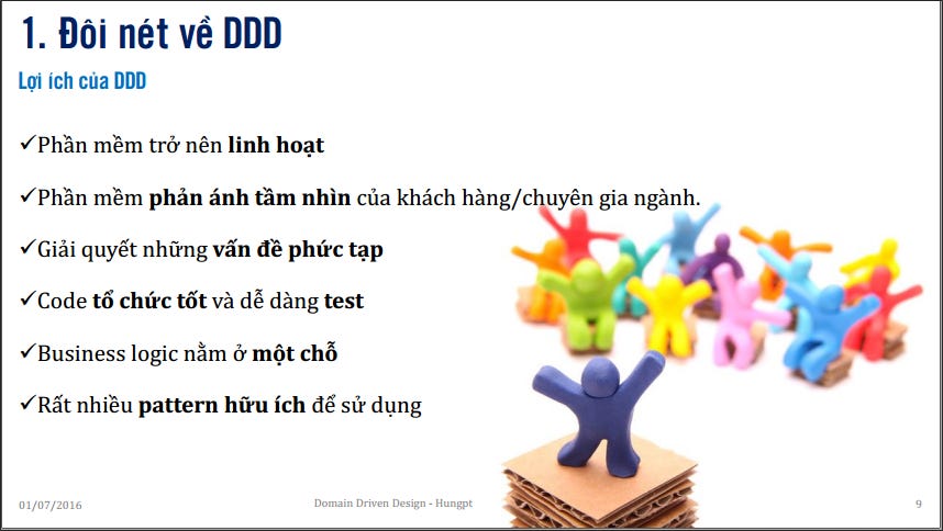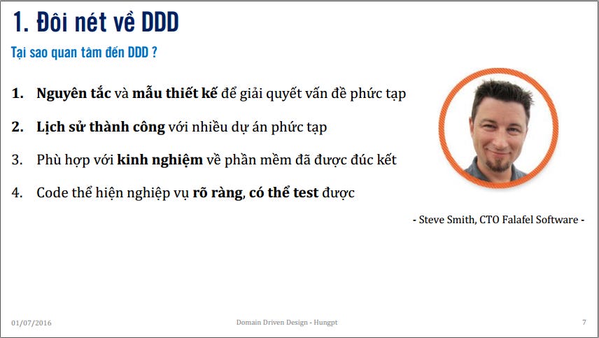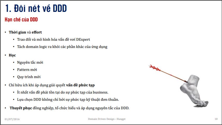 Bài trình bày của Hùng khá rõ ràng và xúc tích tập trung vào nêu bật điểm khác biệt của DDD với mô hình kiến trúc truyền thống: