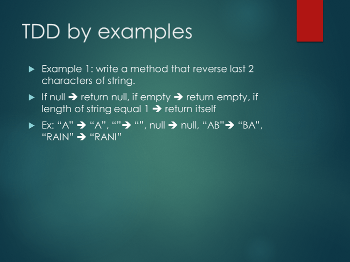 Sau đó diễn giả chỉ ra cách thức thực hiện TDD và đi vào một ví dụ minh họa rất trực quan, qua đó giúp người nghe có thể lĩnh hội được ngay phương pháp phát triển phần mềm sử dụng TDD.