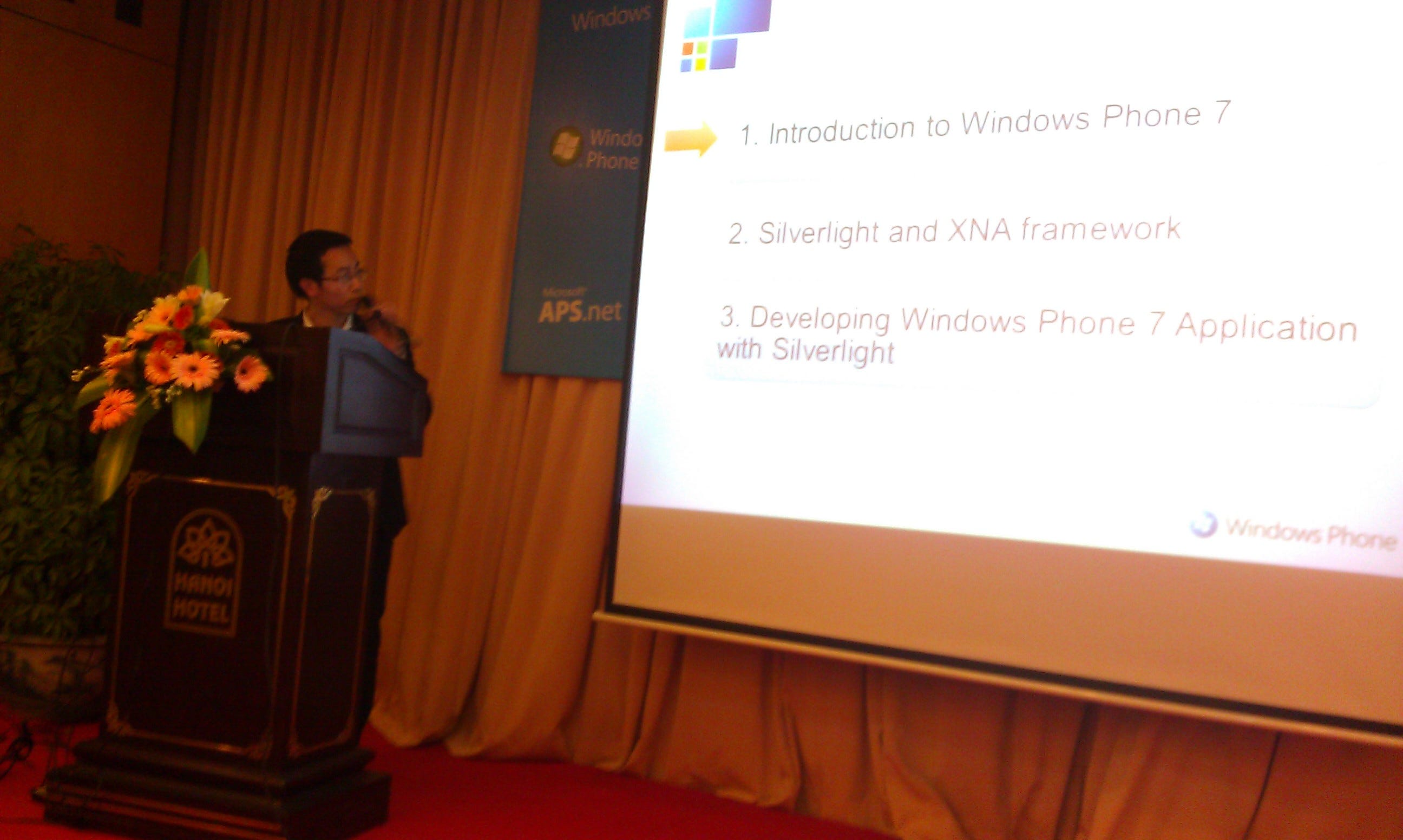 Ngày hội công nghệ Microsoft diễn ra hôm 17/3/2011 vừa rồi tại khách sạn Hà Nội mình có bài thuyết trình về phát triển ứng dụng - lập trình Windows Phone 7 với Silverlight: Developing Windows Phone 7 application with Silverlight.