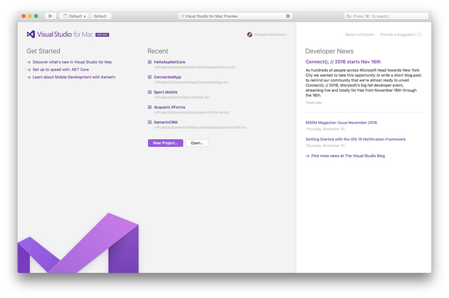 Ngoài ra, Microsoft cũng ra mắt Visual Studio for Mac. Phiên bản này bao gồm các template để tạo ứng dụng Android, iOS native và ứng dụng ASP.NET Core, nó hỗ trợ lập trình bằng ngôn ngữ C# và F# tương tự như Xamarin Studio.