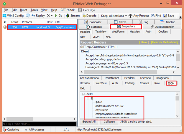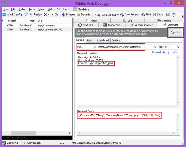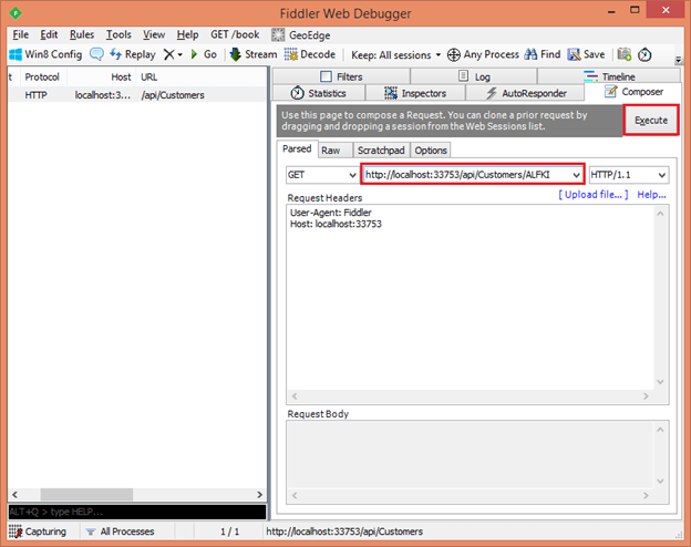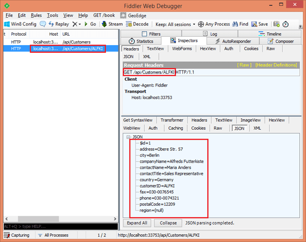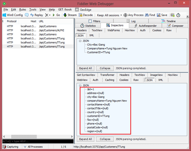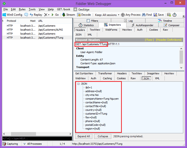 Chúng ta vừa test api trả về danh sách khách hàng, tiếp theo ta sẽ test api trả về một Customer từ Fiddler qua hai bước dưới đây: