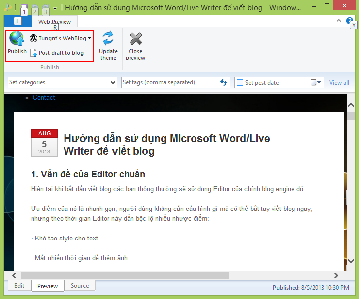 Hướng dẫn viết blog dùng Microsoft Word và Live Writer