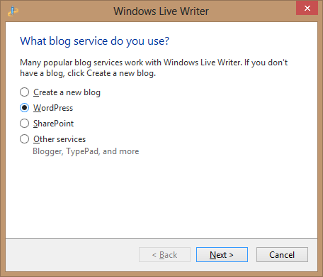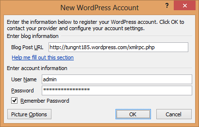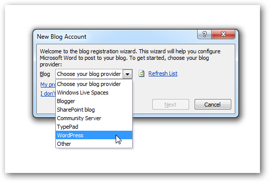Một dialog hiển thị cho phép bạn chọn blog provider của mình. VD: Tôi chọn Wordpress.