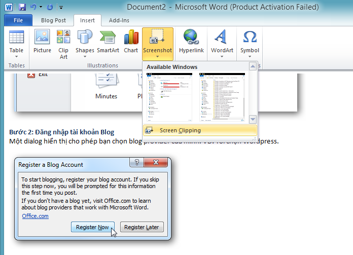 Ngoài ra trên Word còn có một tính năng rất hay đó là Screenshot, giúp bạn có thể chụp ảnh màn hình và đưa vào bài viết ngay lập tức.