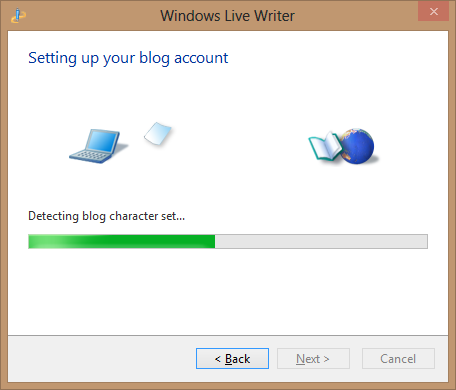 Bạn cần đợi trong giây lát để Live Writer thiết lập tài khoản blog