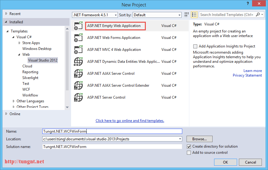 Bước 1: Trong Visual Studio 2013 chúng ta tạo mới 1 project web