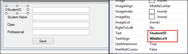 Cuối cùng thiết kế giao diện để Thêm, Sửa một sinh viên trong Panel2 như hình dưới, chú ý Label đặt AutoSize bằng False và TextAlign bằng MiddleLeft cho đẹp