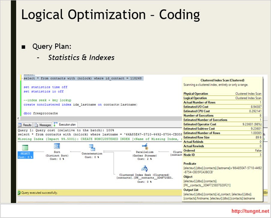 Slide của buổi hội thảo các bạn có thể xem trong view bên dưới. Script demo download tại đây SQLOptimization_Demo