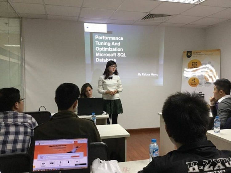 Điều đặc biệt lần này đó là lần đầu tiên meetup của nhóm được trình bày bởi một bạn nước ngoài – Raluca Marcu chuyên gia quản trị và phát triển cơ sở dữ liệu Microsoft SQL Server đến từ công ty PITECH+PLUS của Romania.